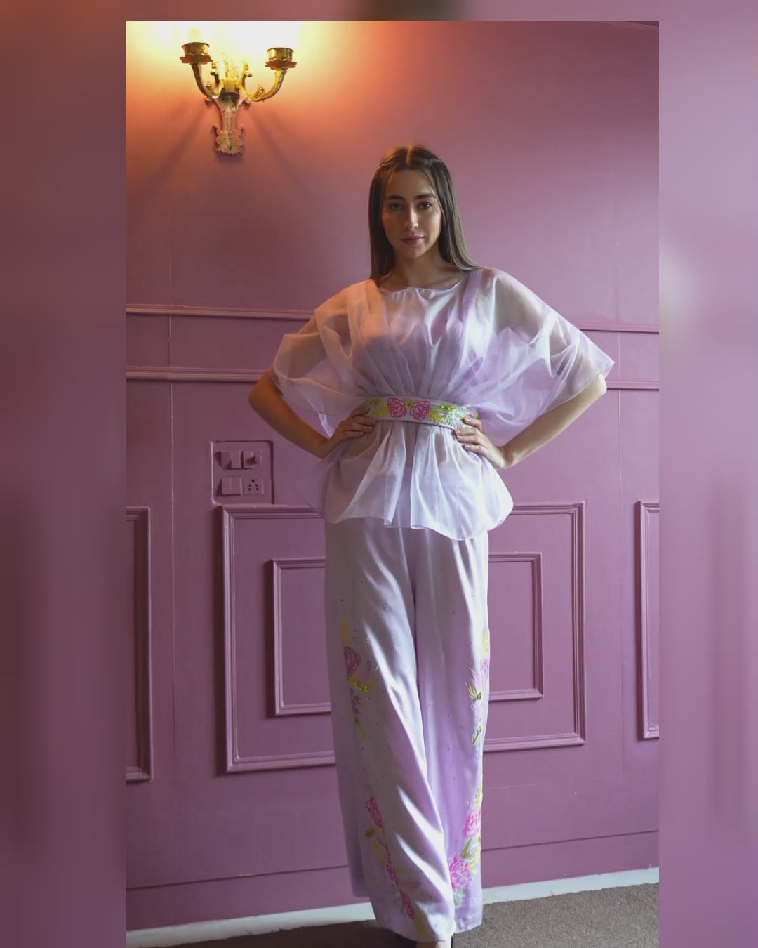 Lavender Co-ord Set with Hand-Embroidered Floral Design