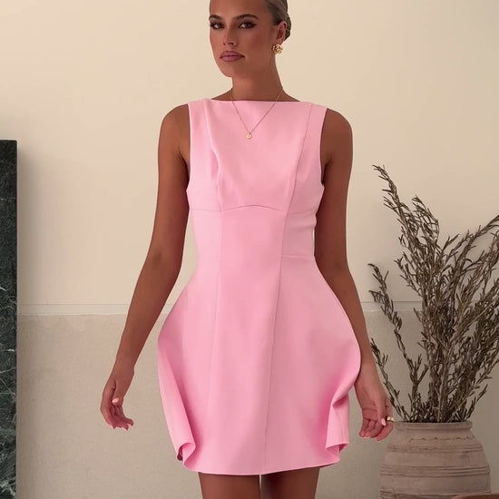 The mini silhouette exudes a youthful, trendy vibe, making it a great choice for everyday wear or an evening out. Whether you're a fan of classic pink dresses for women or simply seeking a standout mini dress, this design has you covered. Pair it with sneakers for a casual daytime look or elevate it with heels for a night out. With its timeless design and trendy features, this dress is a must-have for those who love mini dresses for women that combine comfort with style.