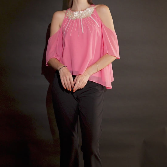 Pink Halter Top with Sequin Embroidery