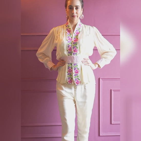 Ivory Co-ord Set with Hand Embroidered Flower Design