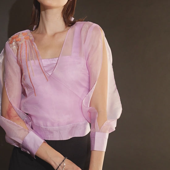 Lavender Organza Top with Sequin Embroidery and Slit Sleeves
