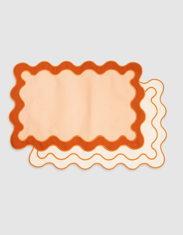 Linen Table Placemet Set with Embroidered Scalloped Edges